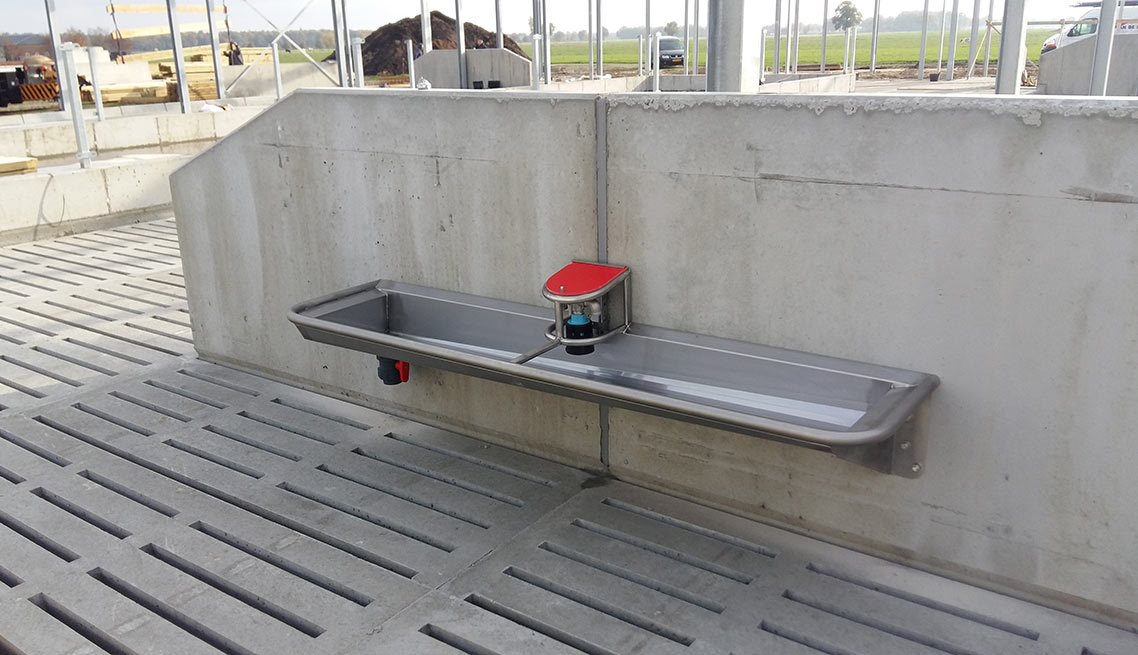 - Maximaal drinkwateroppervlakte. Meer drinkcomfort voor de koe dankzij de vorm van de drinkwaterbak en de compacte vlotter.